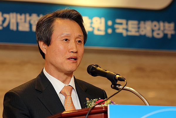 11일 오후 한국부동산개발협회 주최로 논현동 건설회관에서 열린 '부동산개발 핵심쟁점에 대한 대토론회'에서 권도엽 국토해양부 차관이 축사를 하고 있다.