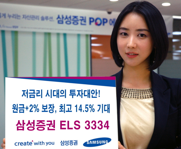 삼성증권은 KOSPI200을 기초자산으로 만기시 주가지수와 관계없이 ‘원금+2%’는 보장하면서 최고 14.5%까지 수익을 노릴 수 있는 ‘삼성증권 ELS 3334회’를 19일까지 150억원 한도로 판매한다고 밝혔다.