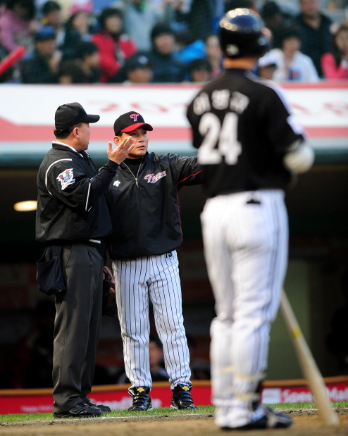 프로야구 LG 트윈스 박종훈 감독이 심판의 스트라이크 판정에 항의하다 결국 퇴장당했다.