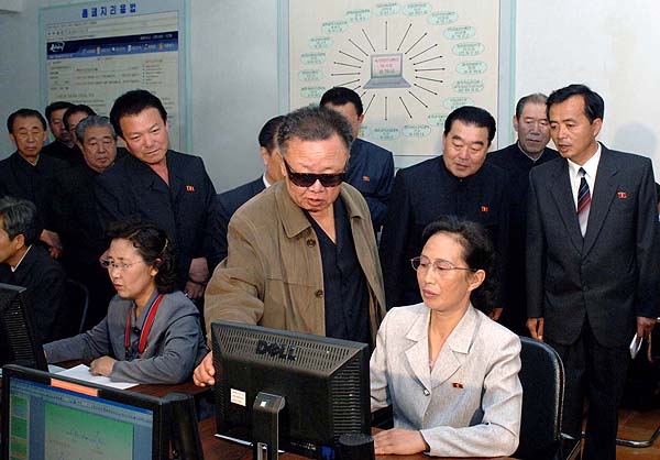 북한 김정일 국방위원장이 함흥화학공업대학을 시찰하고 있다. 조선중앙통신은 23일 이 사진을 보도하며 정확한 촬영날짜를 밝히지 않았다.