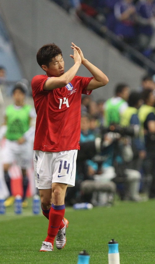 ▲첫 골을 성공시킨 박지성이 24일 일본 사이타마 스타디움에서 열린 축구국가대표팀 평가전 한국과 일본 경기에서 후반전에 교체되며 박수를 보내고 있다.(사진=연합뉴스)