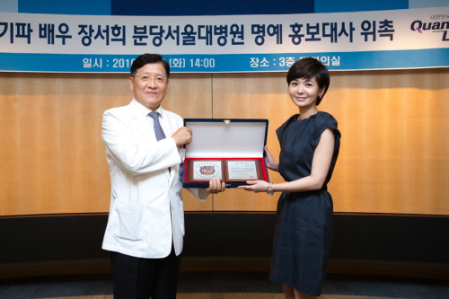 분당서울대병원은 25일 오후 2시 정진엽 원장 및 주요 보직자들이 참석한 가운데 3층 대회의실에서 장서희 씨를 홍보대사로 임명했다.