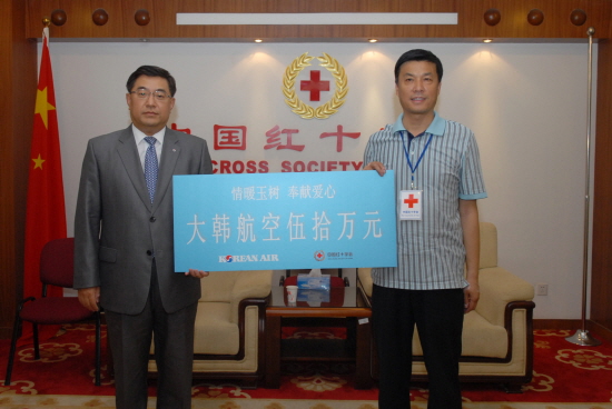 대한항공은 피해 지역 어린이들을 위해 중국 어린이날인 6월 1일을 앞두고 이날 중국적십자회를 통해 칭하이성 지진 피해 지역에 50만 위안의 성금을 전달했다.
