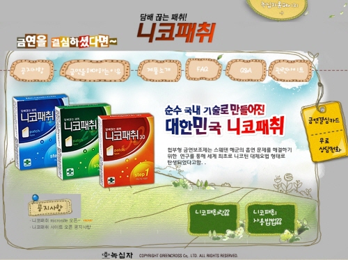 이번에 오픈한 녹십자 ‘니코패취’ 마이크로사이트(www.nicopatch.co.kr)는 공지사항, 금연을 해야 하는 이유, 제품소개, FAQ, Q&A, 관련사이트 소개 등으로 구성돼 있으며 올바른 ‘니코패취’ 사용법, 효과적인 금연법, 금단증상 완화 요법 등도 소개돼 있다.