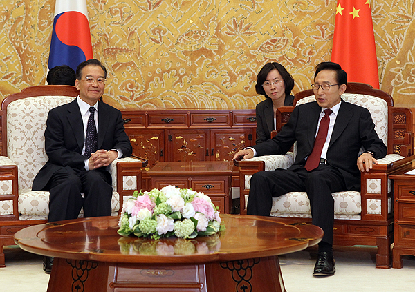 이명박 대통령과 원자바오(溫家寶) 중국 총리가 28일 오후 청와대에서 양자회담을 하고 있다.