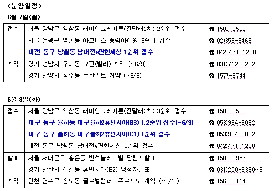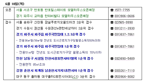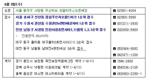 6월 둘째 주 신규아파트 분양시장에서는 전국 9개 사업장에서 7002가구가 공급된다. 그 중 조합물량을 제외한 5853가구가 접수를 시작한다.