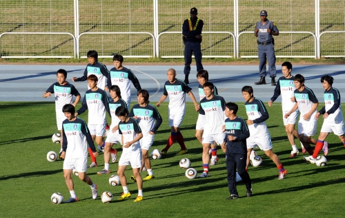 좌우 날개는 각각 '캡틴' 박지성(맨체스터 유나이티드)과 '블루드래곤' 이청용이 맡고 중앙미드 필더로는 기성용(셀틱)과 김정우(상무) 듀오가 선다.