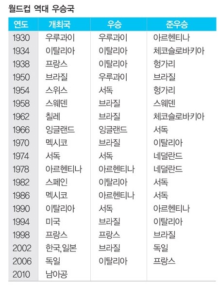 월드컵은 지금까지 남미와 유럽축구의 자존심 전쟁이었다. 이번 월드컵은 처음으로 아프리카에서 열리는만큼 남미에서 월드컵 우승국이 탄생할 것인지에 관심이 주목되고 있다.