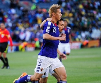 2010 남아프리카공화국 월드컵에서 일본이 카메룬이 맞아 1-0으로 앞서고 있다.