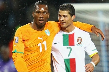 ▲드로그바(왼쪽)와 호날두(사진=피파닷컴)