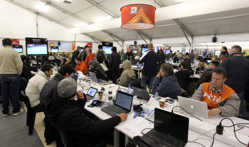 2010 남아프리카공화국 월드컵 G조 예선전인 북한과 브라질의 경기에 관심이 집중되고 있다. 16일 오전 3시30분(한국시각) 남아공 요하네스버그 엘리스파크 스타디움에서 열릴 브라질과 북한의 경기를 취재하기 위해 세계 각국에서 온 기자들이 프레스룸에서 장사진을 이루고 있다.