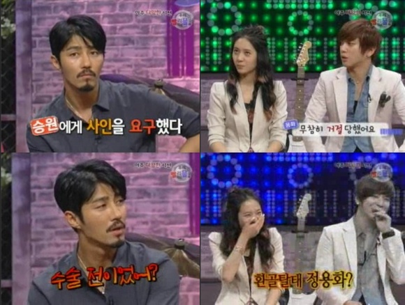 이에 정용화가 "그때는 제가 별로 였던 것 같다"고 말하자 차승원은 사뭇 진지한 표정으로 "수술전이었어?"라고 물어봐 출연진들을 폭소케 했다.