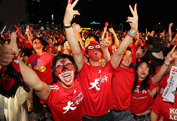 한국과 나이지리아의 경기가 1-1 무승부로 전반전이 종료되자 서울광장은 16강 진출 기대감에 휩싸였다.