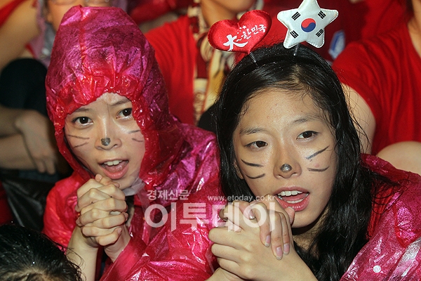 2010 남아공 월드컵 16강전 대한민국-우루과이 경기가 진행중인 26일 밤 0:1 상황이 계속되자 시민들이 안타까워 하고 있다.