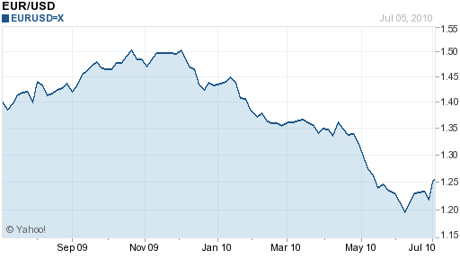 유럽 재정위기 사태가 이어지면서 유로화 가치는 올해 들어 달러 대비 15% 급락한 상태. 선진국 대비 유로존 채권의 스프레드 역시 확대되면서 유럽 최대 경제구역인 독일과 유로존 국채 스프레드는 날로 확대되고 있다.