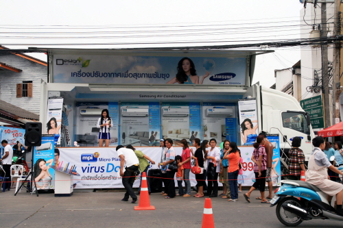 특히 태국 최고 인기여배우 옴(Aum)을 활용한 현지 밀착형 마케팅(사진)을 전개하고 에어컨 홍보용 캐러밴 등을 이용한 각종 이벤트 등 현지 브랜드 인지도를 꾸준히 높인 점이 시장점유율 1위를 달성할 수 있는 원동력으로 평가되고 있다.
