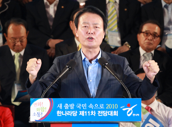 14일 오후 서을 잠실실내체육관에서 열린 한나라당 제11차 전당대회에서 대표최고위원선거에 출마한 한선교 후보가 정견발표를 하고 있다.