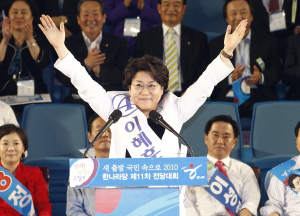 14일 오후 서을 잠실실내체육관에서 열린 한나라당 제11차 전당대회에서 이혜훈 후보가 정견발표에 앞서 인사를 하고 있다.