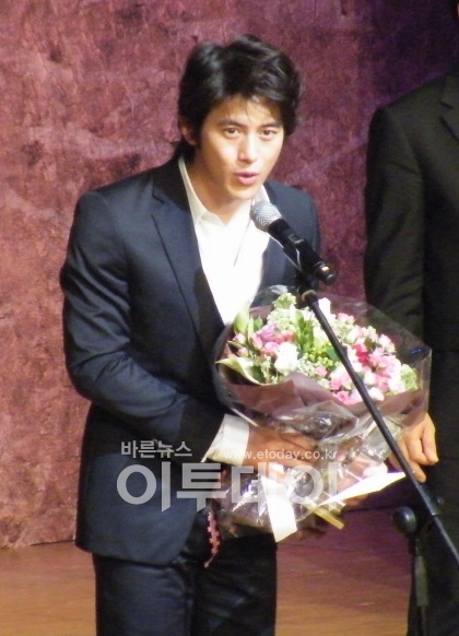 배우 고수가 15일 오후 7시 부천시민회관에서 개막된 부천국제판타스틱영화제(PiFan)에서 판타지아 어워드 남자 부문을 수상한 뒤 소감을 밝히고 있다.