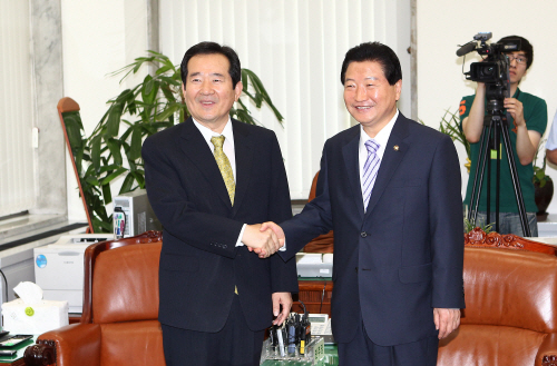 [포토]악수하는 '안상수-정세균' 여야 수장