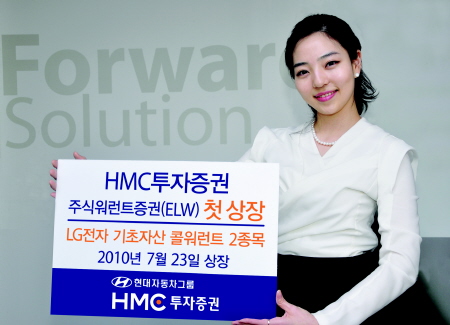이번에 상장하는 ELW는 LG전자를 기초자산으로 하는 콜워런트(HMC0001엘지전자콜, HMC0002엘지전자콜) 2종목이다.