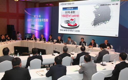 전국경제인연합회는 22일 소공동 웨스틴조선호텔에서 대도시 부적합 공장부지 활용, 건설기계산업 활성화, 지속가능한 사회적기업 육성 방안 제시를 위한 '제3차 300만 고용창출위원회'를 개최했다.(사진제공=전경련)