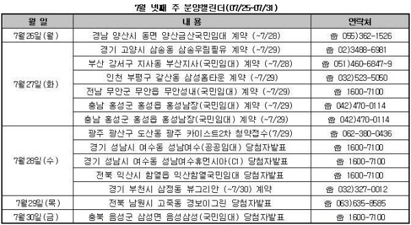 7월 마지막 주에는 청약을 받는 민영 아파트는 단 한 곳도 없고, 공공 임대 아파트만 한 곳에서 공급된다.