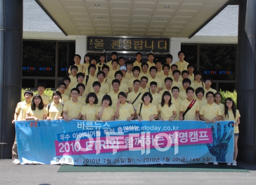 ETRI는 이번 발명캠프 참가 학생들에게 ▲외부 전문가 특강 ▲지식재산권 제도 및 명세서 작성 교육 ▲특허 및 정보검색 실습 ▲아이디어 발굴 등 지식재산권 및 정보통신 관련 교육을 실시할 계획이다.