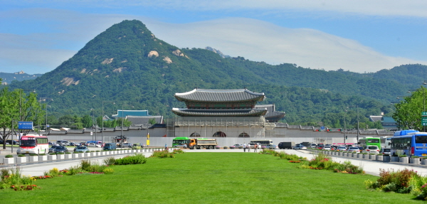 28일 오전 문화재청이 복원 작업중인 서울 광화문이 거의 온전한 모습을 드러내 시선을 모으고 있다. 원형으로 복원중인 광화문은 광복절인 다음달15일 시민들에게 정식 공개 될 예정이다.