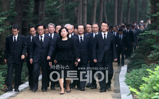 한편 이날 현 회장은 오전 11시 계열사 부서장급 200여명과 함께 선영을 찾아 참배를 마치고 바로 차에 몸을 실었다.