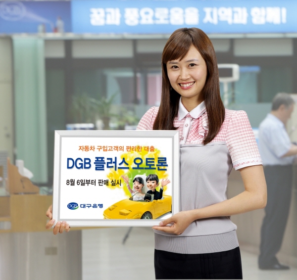 'DGB 플러스 오토론'은 소득 증빙이 가능한 직장인과 자영업자를 대상으로 신규 자동차 구입금액 범위 내에서 최대 5000만원까지 가능하고 대출기간은 1년 이상 5년 이내에서 매월 분할상환하면 된다.