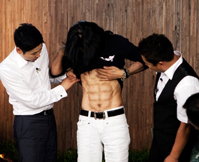 신성우가 복근을 공개하는 순간 주위에서 "아름다운 복근이다" 등의 호응을 보내며 환호성을 질렀다.