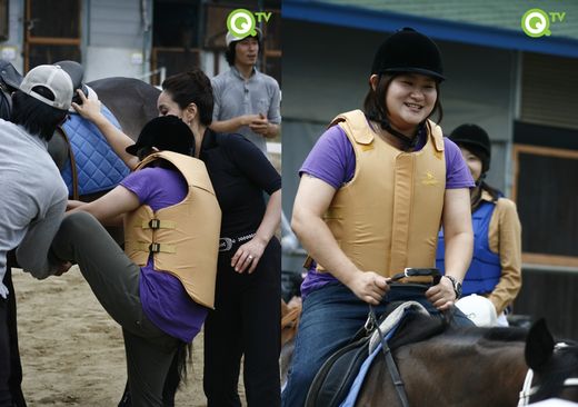 이날 김신영은 결국 승마코치와 이경실의 도움을 받아 겨우 오를 수 있었다.