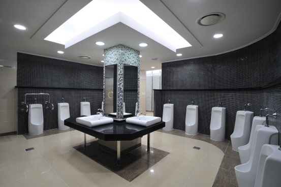 지하철 5호선 천호역 화장실은 백화점 화장실 못지않은 모습으로 탈바꿈했다. 벽면은 타일로 장식해 고급스러움을 더했고 독특한 설계로 미관뿐 아니라 효율성을 높였다.