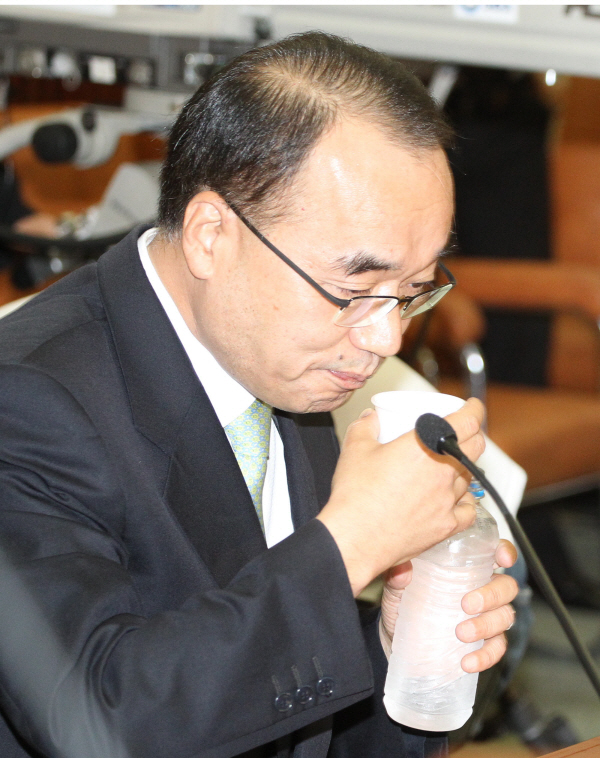 박재완 고용노동부장관 후보자가 20일 오전 국회에서 열린 고용노동부장관 후보자에 대한 인사청문회에서 답변을 한 뒤 물을 마시고 있다.