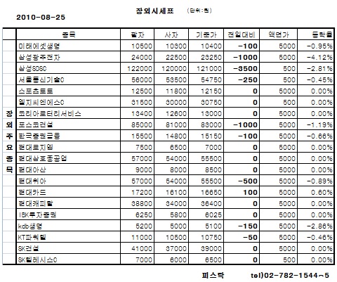 장외 주요 종목들은 25일 하락세가 우세했다.