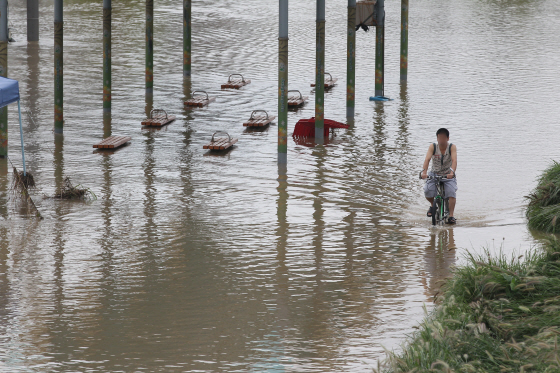 서울 등 수도권과 충남 지방에 호우특보가 발효 중인 가운데 29일 오후 서울 중랑천 중화교 인근 둔치가 물에 잠겨 있다.