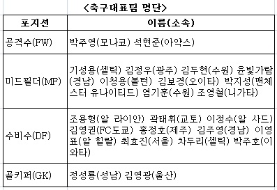 이번 대표팀에는 주장 박지성(맨체스터 유나이티드)을 비롯해 네덜란드 명문클럽 아약스 암스테르담에서 뛰는 열아홉 살 유망주 석현준 등 조 감독이 소집을 요청한 해외파 선수 14명이 모두 참가한다.
