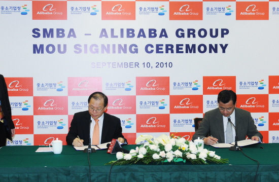 중소기업청은 세계 최대 전자상거래업체인 알리바바그룹과 지난 10일 중국 항저우에서 '한국 중소기업의 온라인 수출 촉진을 위한 양해각서(MOU)'를 체결했다고 12일 밝혔다.