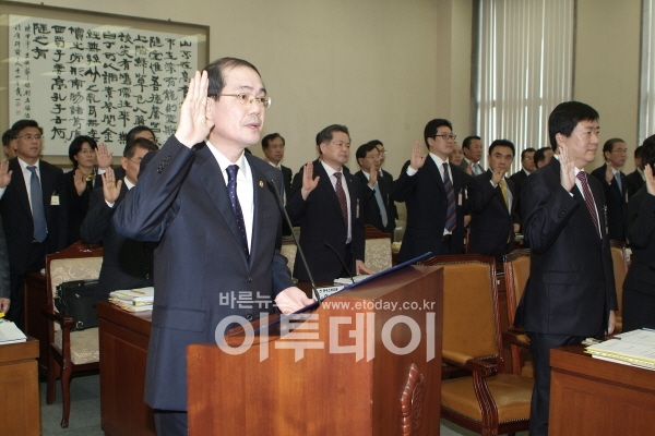 정호열 공정거래위원장이 5일 오전 국회에서 진행된 국정감사에 출석해 선서를 하고 있다.