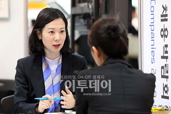 2010 외국인투자기업 채용박람회가 8일 오전 삼성동 코엑스에서 열린 가운데 외국기업 관계자가 구직자들과 채용상담을 하고 있다.