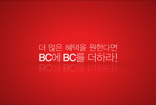 BC카드는 지난 1일부터 TV광고 ‘BC에 BC를 더하라’를 방영하고 있다고 11일 밝혔다.