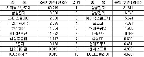 <3분기 주식대차거래량ㆍ체결금액 상위 종목>
