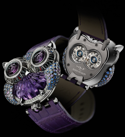 부쉐론의 블랙 골드에 다이아몬드와 사파이어가 부엉이 형상을 이루는 '슈에트'에 손목시계 개구리 눈 모양의 확대경이 달려있는 'HM3 프로그(HM3 Frog)'를 결합해 '쥬얼리 머신'이 탄생했다.
