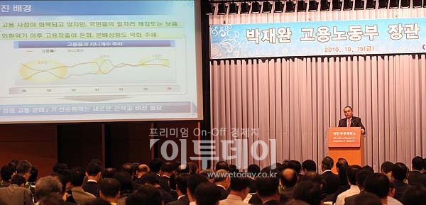 박재완 고용노동부 장관이 15일 대한상공회의소에서 열린 CEO 간담회에서 공정사회와 고용노동정책을 주제로 강연을 하고 있다.
