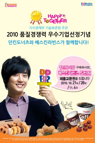 던킨도너츠와 배스킨라빈스는 ‘2010 품질경쟁력 우수기업’에 선정된 기념으로 공동 프로모션인 ‘해피 투게더’를 전개한다고 20일 밝혔다.