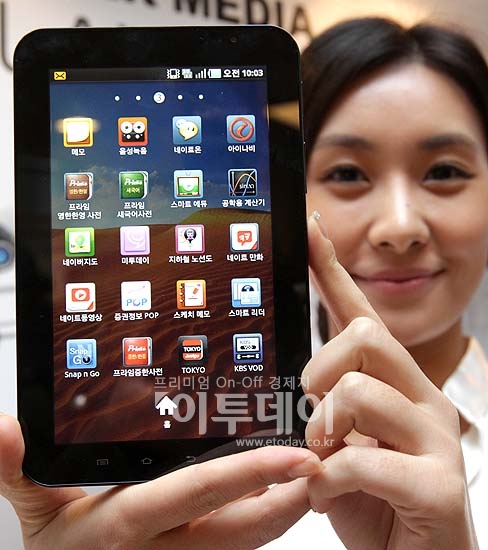 갤럭시탭은 WSVGA 7.0형 고해상도 화면, 11.98mm 두께, 386g 무게로 모바일 라이프에 최적화된 사용환경을 구현했다.