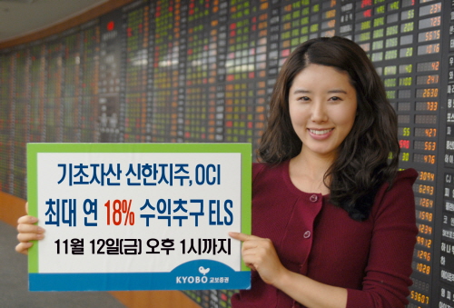 이번에 판매하는 교보증권 제679회 ELS는 OCI 보통주와 신한지주 보통주를 기초자산으로 연 18%의 수익을 추구하는 만기 3년형 상품이다. 기초자산의 가격이 만기평가일까지 한번도 최초기준주가의 55%미만으로 하락한 적이 없으면 만기시점에 54%의 수익을 지급한다.