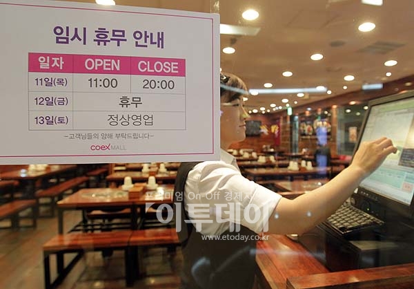 서울 G20 정상회의 개막일인 11일 오후 삼성동 코엑스몰의 매장에 정상회의 기간 동안 임시 휴무를 알리는 안내문이 붙여져 있다.