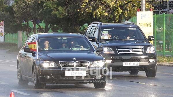 서울 G20 정상회의 둘째날인 12일 오전 스페인 의전차량이 회의가 열리는 서울 삼성동 코엑스로 향하고 있다.